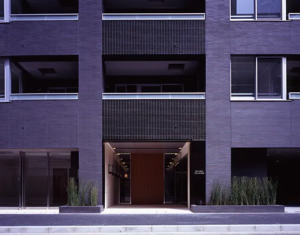 黒を基調としたシックなデザインの外観が、重厚な雰囲気を演出する「ウィルローズ月島」
