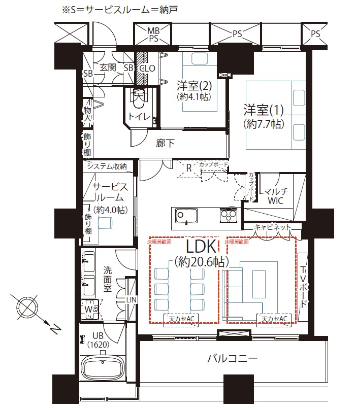 - 2面床暖房